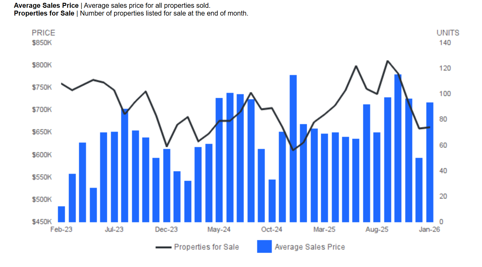 AVERAGE SALES PRICE AND NUMBER OF PROPERTIES FOR SALE