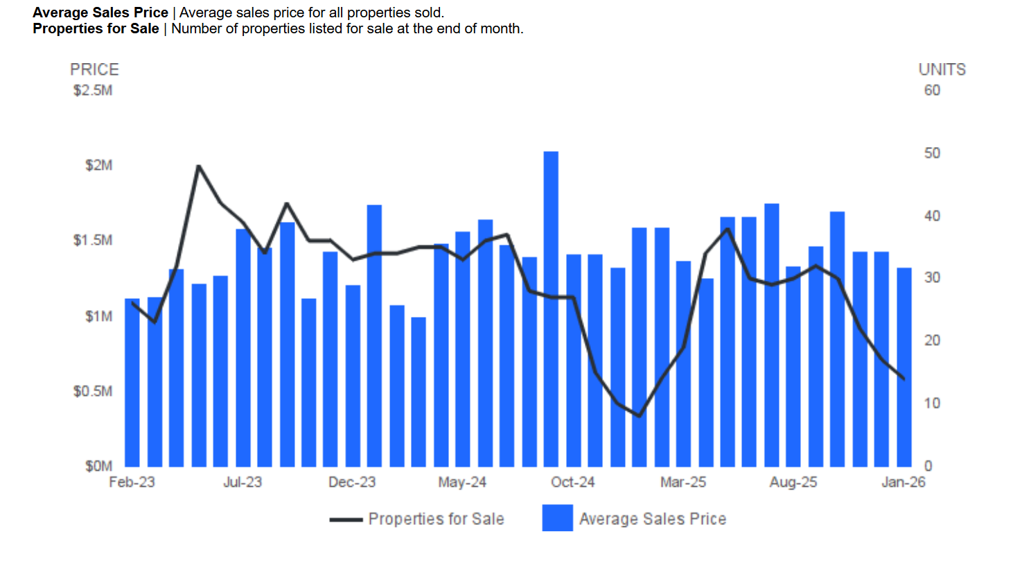 AVERAGE SALES PRICE AND NUMBER OF PROPERTIES FOR SALE